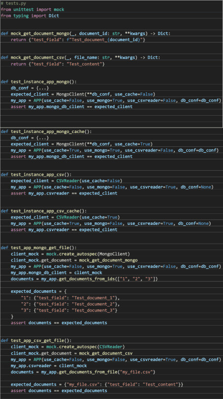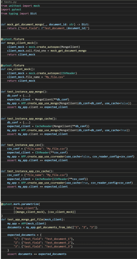 A simple vista se puede apreciar que ahora los tests son mucho más sencillos de seguir. Pudiendo mockear cada implementación por separado, creando “fixtures” y pudiendo parametrizar ciertos tests dependiendo que implementación queramos probar. Por otro lado, en este caso es bastante más sencillo probar el flujo de los métodos de los clientes.